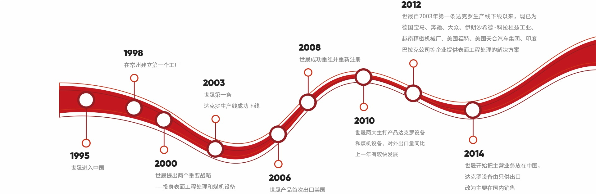 世晟機械科技有限公司隸屬于世晟集團(香港)控股有限公司,總部位于中國香港,是一家全球性的為表面處理工程,提供系統解決方案的公司。下設十余家子公司,目前國內有三大生產基地,集團總資產十余億元,業務遍及世界上70多個國家和地區。主要專注于鋅鋁涂料、重防腐涂料、固態電池新材料、鋅鋁涂層涂覆線、涂裝設備、房地產開發經營、創業投資等業務。 世晟(SHISHENG)是表面處理工程技術提供商,成立于1995年,中國世晟公司總部位于日照,在常州、滁州、上海、海南、濟南等都設有分公司,中國世晟在上海設有世晟全球呼叫中心。